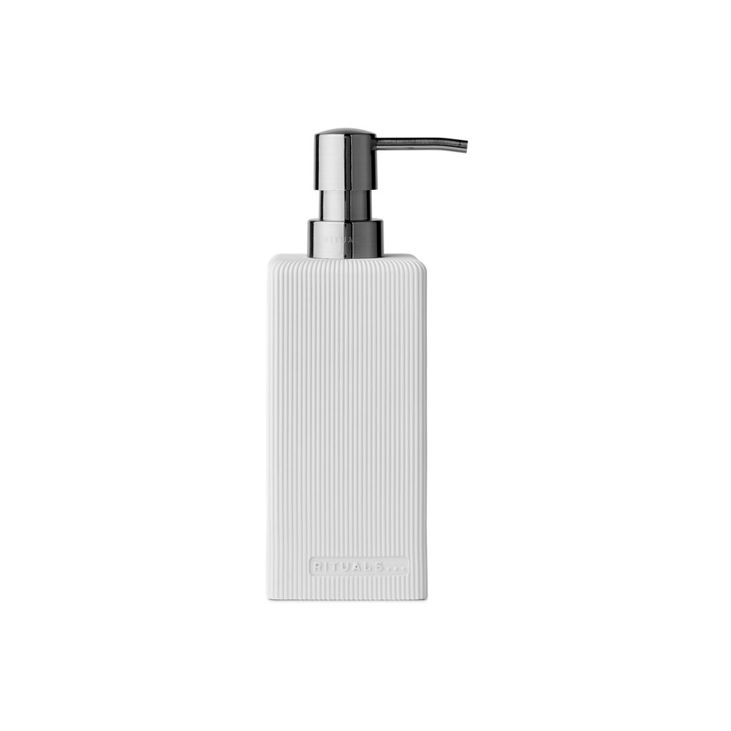 Tento 3D rebrovaný dávkovač mydla predstavuje štýlový spôsob uskladnenia mydla na ruky a dodá vašej kúpeľni, WC alebo kuchyni nádych bohatosti. Tento dávkovač s možnosťou opätovného naplnenia možno naplniť vaším obľúbeným klasickým mydlom na ruky Rituals. Čierny dávkovač mydla môžete skombinovať so zodpovedajúcim príslušenstvom a dosiahnuť tak ucelený vzhľad. Pri každom doplnení vyčistite vnútornú a vonkajšiu časť pumpičky. Ak chcete vyčistiť vnútro, naplňte ho čistou vodou a tú potom pumpujte namiesto mydla. Potom ju dôkladne vysušte. Tento dávkovač mydla nie je vhodný pre dezinfekčné prostriedky na báze alkoholu, pretože alkohol môže narušiť vnútro dávkovača.