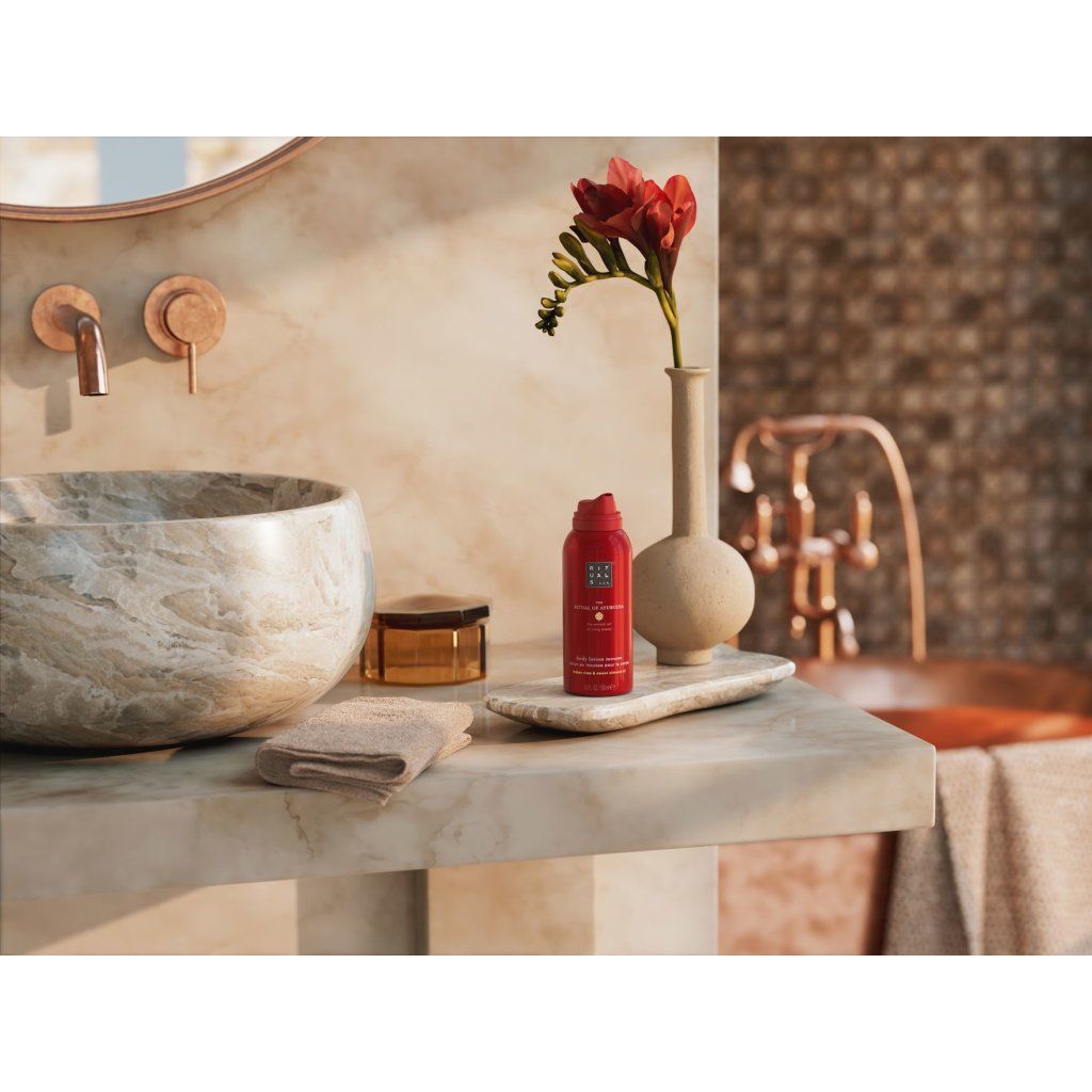 Naša obľúbená telová pena sa premení na výživnú vrstvu, ktorá pokožku hydratuje a zanechá ju hodvábnú a jemnú na dotyk. Je obohatená o amlu, známu pre svoje antioxidačné účinky a vysoký obsah vitamínov, a pomáha tak chrániť prirodzený lesk pokožky. Ľahká textúra sa rýchlo vstrebáva a zanechá pokožku pružnú, hladkú a krásne voňavú jemnou vôňou indickej ruže a oleja zo sladkých mandlí.