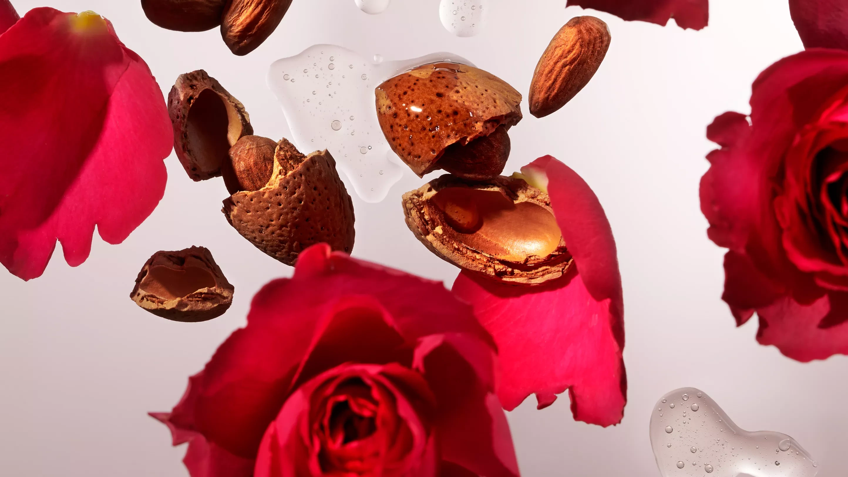 Voda, Sodium Laureth Sulfate, Glycerin, Cocamidopropyl Betaine, Prunus Amygdalus Dulcis Oil, Rosa Damascena Flower Extract, Glycereth-2 Cocoate, C12-13 Alkyl Lactate, C12-13 Alcohols, Betaine, Polysorbate 20, chlorid sodný, glyceryl oleát, kokos-glukosid, tokoferol, hydrogenované palmové glyceridy citrát, propylenglykol, parfém, hexylcinnamal, limonen, linalyl acetát, linalool, kumarin, olej z kôry Citrus Aurantium, acetyl cedren, benzoát sodný, sorbát draselný, kyselina citrónová, kyselina mliečna.