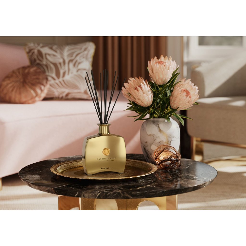 S týmito luxusnými vonnými tyčinkami z našej súkromnej kolekcie sa môžete ponoriť do sveta kvetinovej elegancie, kde sa jemnosť snúbi so sofistikovanosťou. Svieža kasia a kvetinové srdce z orosených okvetných lístkov ruže evokujú čistotu ranných kvetov. Keď sa usadia, krémová vanilka a kašmírové drevo vytvoria hrejivý, sladký pôvab. Zlatá sklenená fľaštička nádherne doplní každý interiér a poskytne výnimočnú atmosféru až na 5 mesiacov. Skúste vonné tyčinky skombinovať s vhodnou sviečkou, aby ste umocnili svoj zážitok z vône. Dá sa donekonečna dopĺňať.