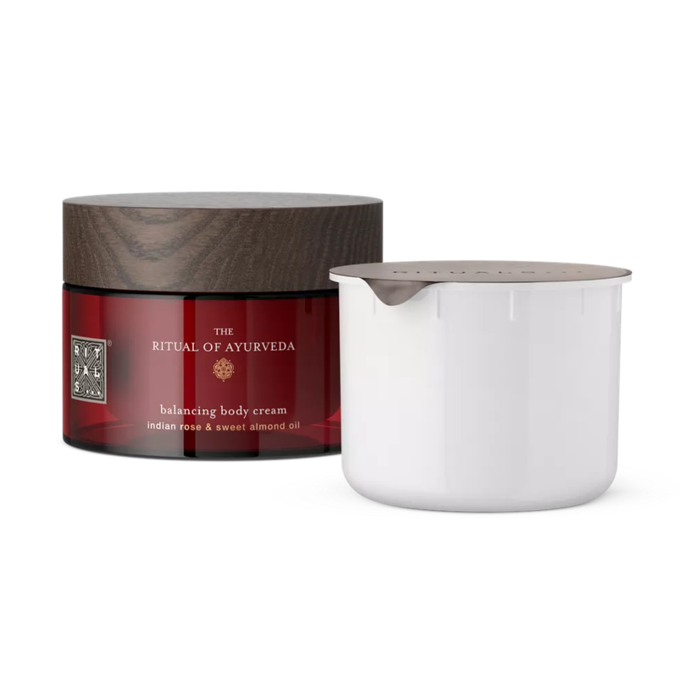 - Obsahuje telový krém The Ritual of Ayurveda a náhradnú náplň, aby ste mohli svoj obľúbený krém používať dlhšie.