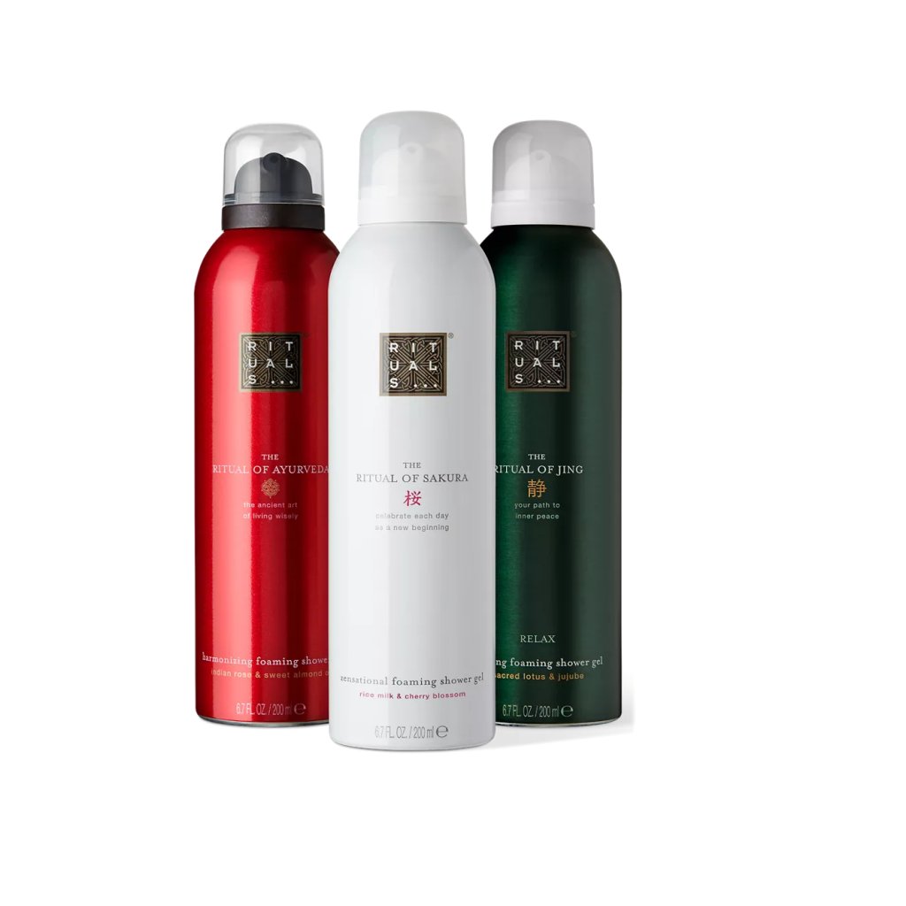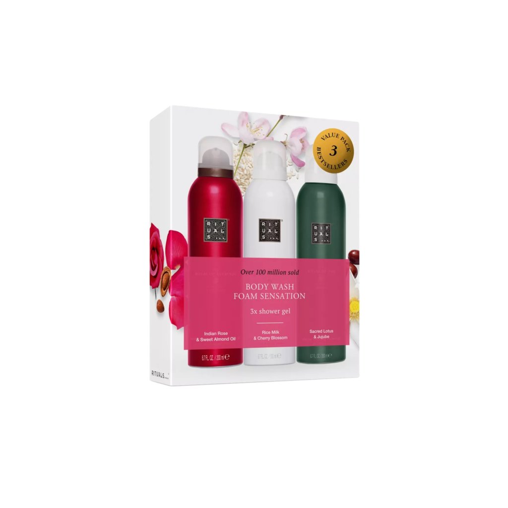 Predstavte niekomu nádherný svet Rituals s touto darčekovou súpravou. Obsahuje tri sprchové peny v plnej veľkosti: Rituál Sakura, Rituál Ayurveda a Rituál Jing. Doprajte si každý deň pocit nových začiatkov s jemnou vôňou čerešňového kvetu a telo posilňujúcim ryžovým mliekom, očisťujúcou a energizujúcou indickou ružou a olejom zo sladkých mandlí a povzbuďte sa upokojujúcou a relaxačnou vôňou jujuby a lotosového kvetu.