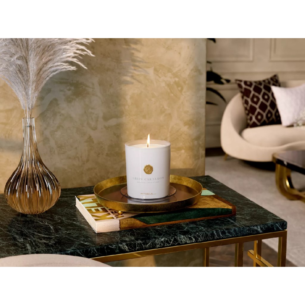 Zahaľte svoje zmysly do povznášajúcej zmesi bohatého korenia, ovocia a drevitých tónov s našou luxusnou vonnou sviečkou Green Cardamom.