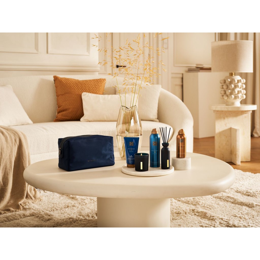 Táto veľká darčeková súprava obsahuje kompletnú čistiacu súpravu na vytvorenie dokonalej kúpeľnej atmosféry u vás doma. S vyživujúcimi a čistiacimi produktmi na báze eukalyptu, arganového oleja a rozmarínu je to dokonalý spôsob, ako zažiť to najlepšie z radu The Ritual of Hammam. Vo vnútri nájdete sprchový gél, telový krém, telové mlieko vo forme peny, mini vonné tyčinky a vonnú sviečku. Po rozbalení môžete puzdro používať na cestách. Penivý sprchový gél - gélové zloženie, Prechádza do peny - S eukalyptom a arganovým olejom Telový krém (100 ml) - Revitalizuje a hydratuje - Výživný arganový olej Telové mlieko vo forme peny - Nelepí - Upokojuje dehydrovanú a smädnú pokožku Mini vonné tyčinky (70 ml) - Omladzujúca vôňa - Vydrží až 6 týždňov Vonná sviečka (140 g) - Prírodný vosk - Očistná vôňa