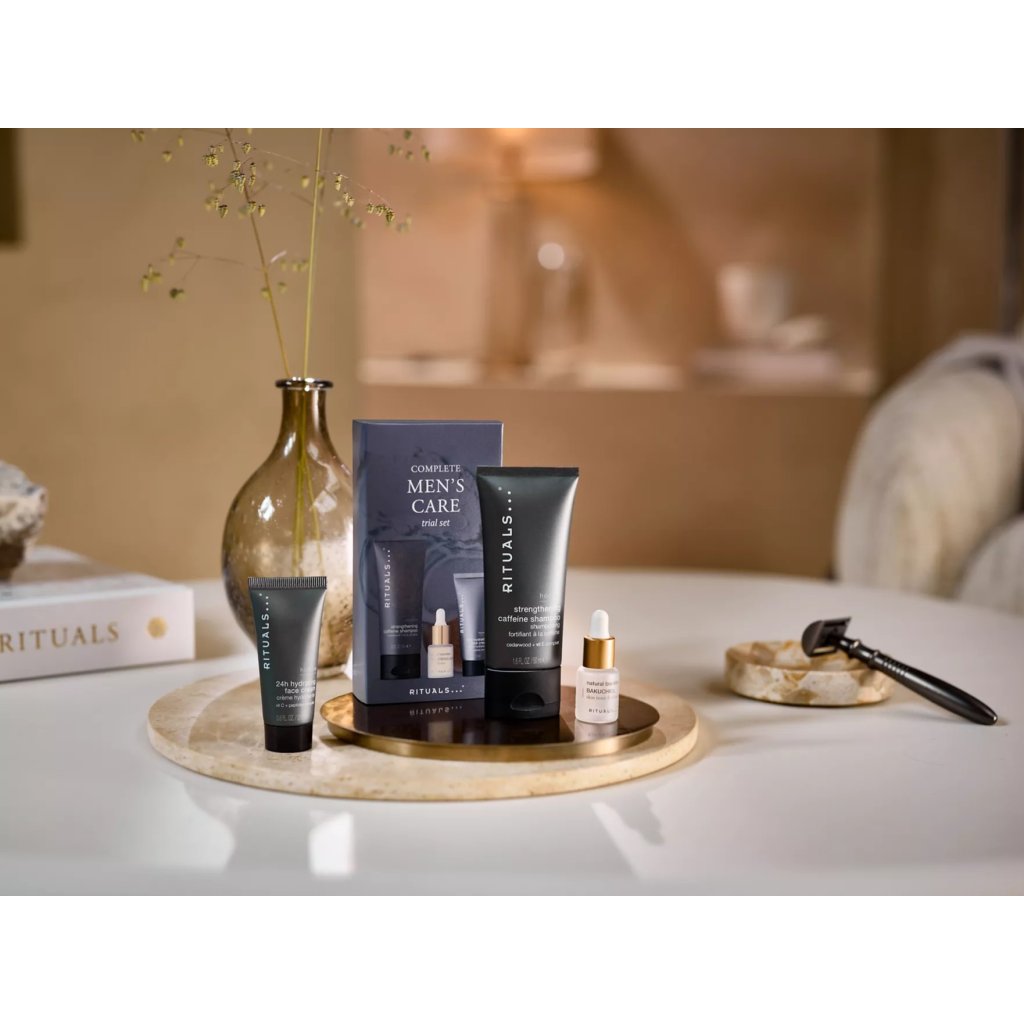 Kompletná denná starostlivosť v jednej praktickej súprave - ideálna ako darček, na cesty alebo na vyskúšanie niečoho nového. Táto trojfázová starostlivosť sa začína šampónom s kofeínom, ktorý dodáva energiu pokožke hlavy a posilňuje vlasy, po ktorom nasleduje posilňovač s kyselinou hyalurónovou na zachytenie vlhkosti. Na záver sa používa ľahký 24-hodinový hydratačný krém obohatený o vitamín C a peptidy na vyhladenie a osvieženie pokožky.