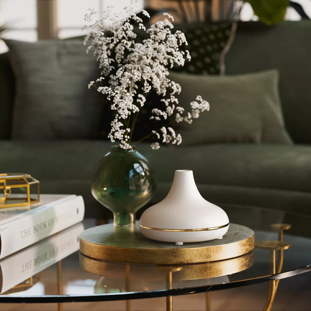 Pripravte sa na pokojný spánok s aróma difuzérom Ritual Jing. Tento nový a inovatívny difuzér na spánok vytvára uvoľňujúcu atmosféru pre pokojný spánok uvoľňovaním priehľadného oblaku vône. Len na 10 minút vašu spálňu naplní ľahká voňavá hmla s účinnými látkami, ktoré pomáhajú upokojiť myseľ a upokojiť zmysly. Tóny uvoľňujúcej levandule - o ktorej je známe, že pomáha upokojiť dušu a poskytuje relaxáciu - v kombinácii so vzácnym santalovým drevom - ktoré pomáha vyčistiť a sústrediť myseľ na meditáciu - spoločne pripravujú vaše telo, myseľ a dušu na dobrý spánok.