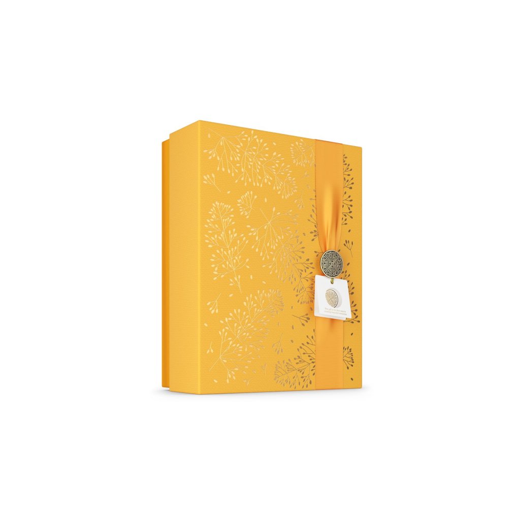Tato nádherná dárková krabička je ideálním dárkem pro přátele, členy rodiny nebo pro sebe! Kolekce Ritual of Mehr byla vytvořena pro povzbuzení těla, mysli i duše. Každý výrobek z této kolekce pro domácnost a tělo, naplněný sladkým pomerančem a cedrovým dřevem, vám zlepší náladu a naplní vaše srdce štěstím. Obsahuje pěnivý sprchový gel, tělový krém, vonnou svíčku a mini vonné tyčinky. Design origami byl inspirován japonským uměním darování. V japonské kultuře může být dárkové balení stejně důležité jako samotný dárek, kdy je dárek vnímán jako forma komunikace mezi dárcem a obdarovaným. Bezplatné luxusní dárkové krabičce, kterou lze použít opakovaně, lze vdechnout druhý život tím, že v ní uchováte fotografie, dopisy nebo jiné předměty.