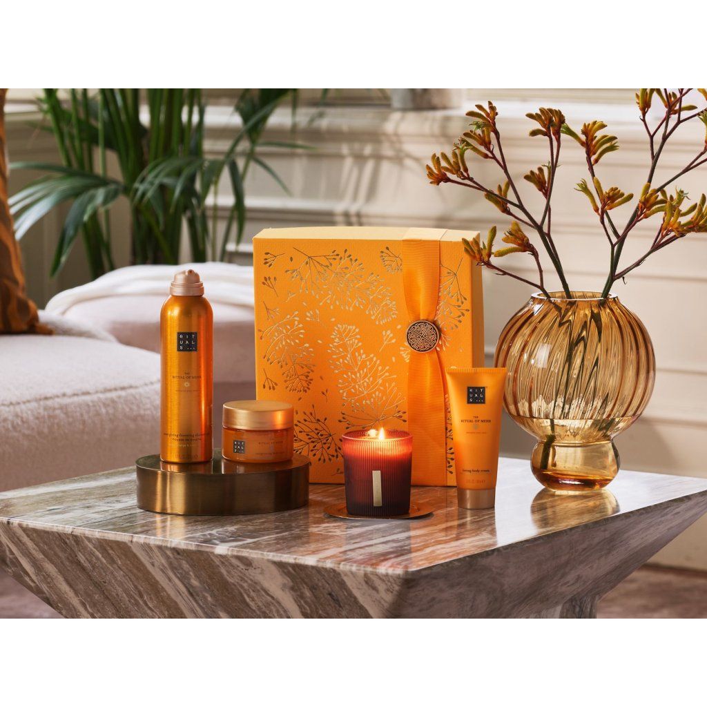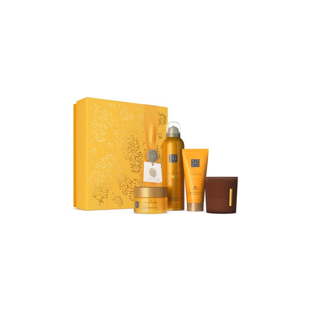 Táto sada je ideálnym darčekom pre vás, šťastného priateľa alebo člena rodiny. Je plná výrobkov do kúpeľa, na telo a do domácnosti, ktoré naplnia váš svet energiou. Pripravte sa na to, že sa zamilujete do ikonickej sladkej citrusovej vône The Ritual of Mehr.