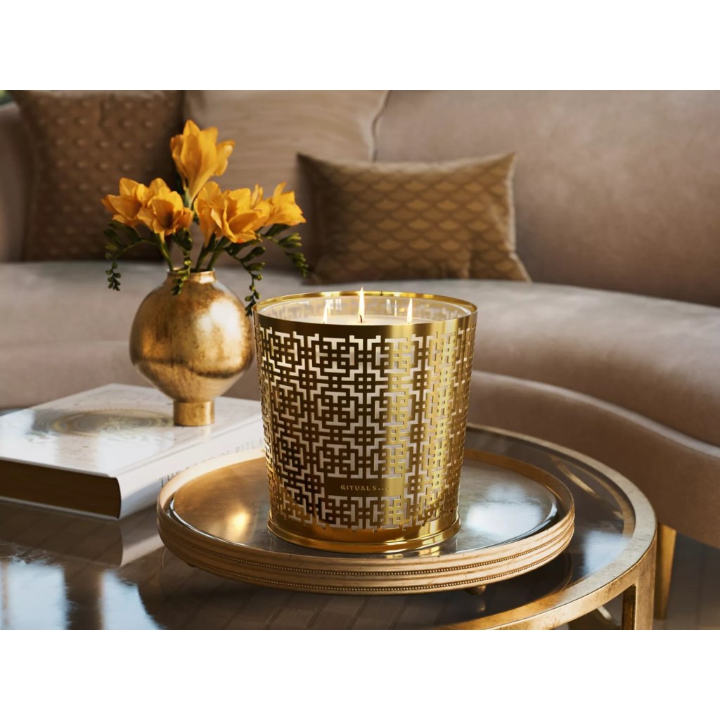 Obklopte se bohatou a hřejivou vůní labdanum, kadidla a cedrového dřeva s touto luxusní vonnou svíčkou. Krásně stylizovaná ve zlatém kovovém svícnu.