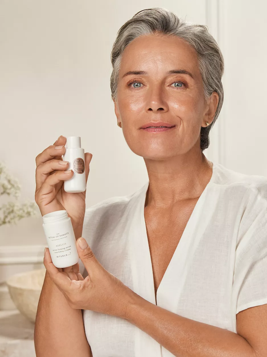 Prejavte úctu k svojej pokožke a prírode s touto ekologickou náplňou do spevňujúceho séra Ageless. Dokonale sa zmestí do vašej luxusnej fľaše a obsahuje rovnaké zloženie na spevnenie a lifting pleti. Kombinácia prírodných zložiek CICA Firming Complex' a skalnej ruže vytvára toto aktívne spevňujúce sérum od The Ritual of Namaste. Jeho hodvábne jemný povrch pomáha zvyšovať pevnosť a pružnosť vašej pleti a viditeľne minimalizovať prítomnosť jemných liniek a vrások. Výsledkom je úžasná pleť so žiarivým, nestarnúcim vzhľadom - najlepší spôsob, ako si uctiť svoju prirodzenú krásu.