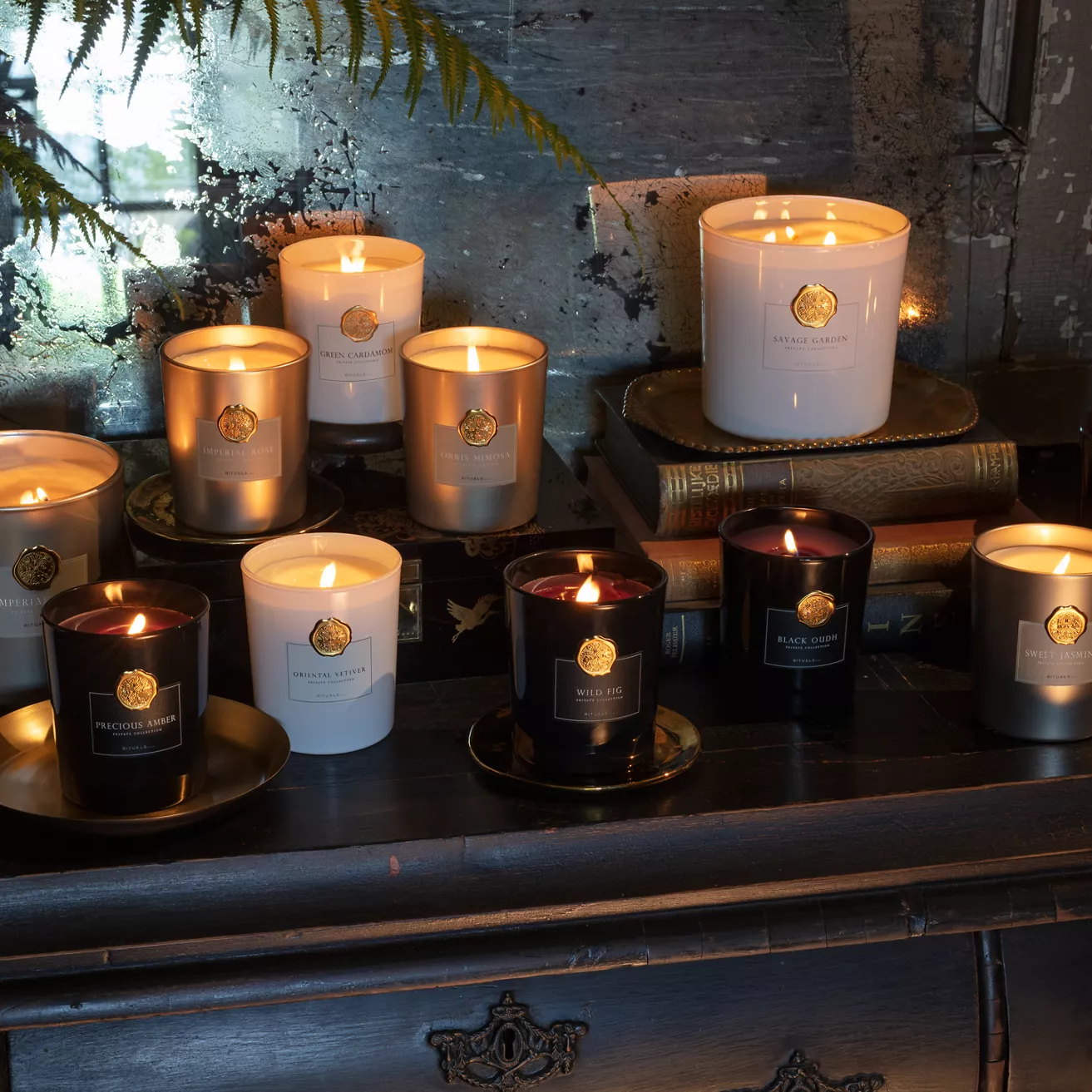 Potešte svoje zmysly paletou zmyselných vôní a upokojte svoju dušu v jej hrejivom objatí. Výrazný charakter tejto vonnej sviečky je založený na bohatej a dymovej vôni oudhu, lahodnej ingrediencie, ktorá má dlhú históriu podpory pohody. Vzácny sladký pomaranč zmiešaný s nádychom bergamotového oleja vedie k plnému kvetinovému buketu, zatiaľ čo zadné tóny sú kompozíciou tmavých drevín, starostlivého pižma a hrejivého jantáru.