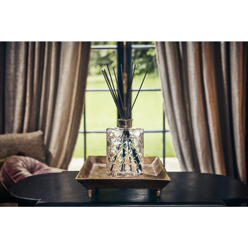 Elegantní luxusní skleněná karafa na vonné tyčinky z kolekce The Mansion Collection – samotná nádoba bez vůně, kterou si můžete doplnit oblíbenou náplní dle vlastního výběru.
