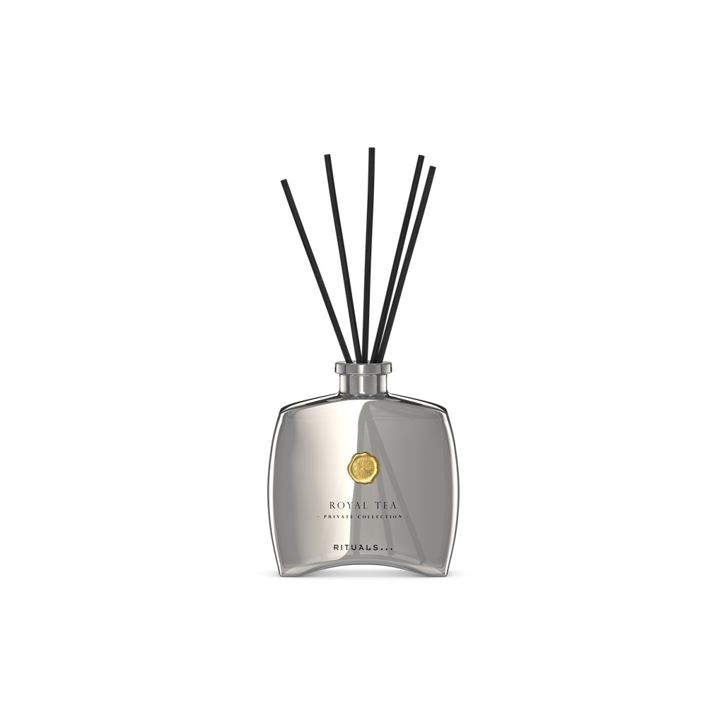 Doprajte svojmu domovu povzbudzujúcu vôňu týchto bohatých vonných tyčiniek z našej súkromnej kolekcie. Zmes zeleného čaju, ovocných fíg, citrusov a drevitých tónov so sviežou vôňou a elegantným kovovým dizajnom dodá vášmu domovu nádych elegancie až na 6 týždňov. Ak chcete vôňu ešte viac umocniť, skombinujte vonné tyčinky s čajovou sviečkou Royal Tea.