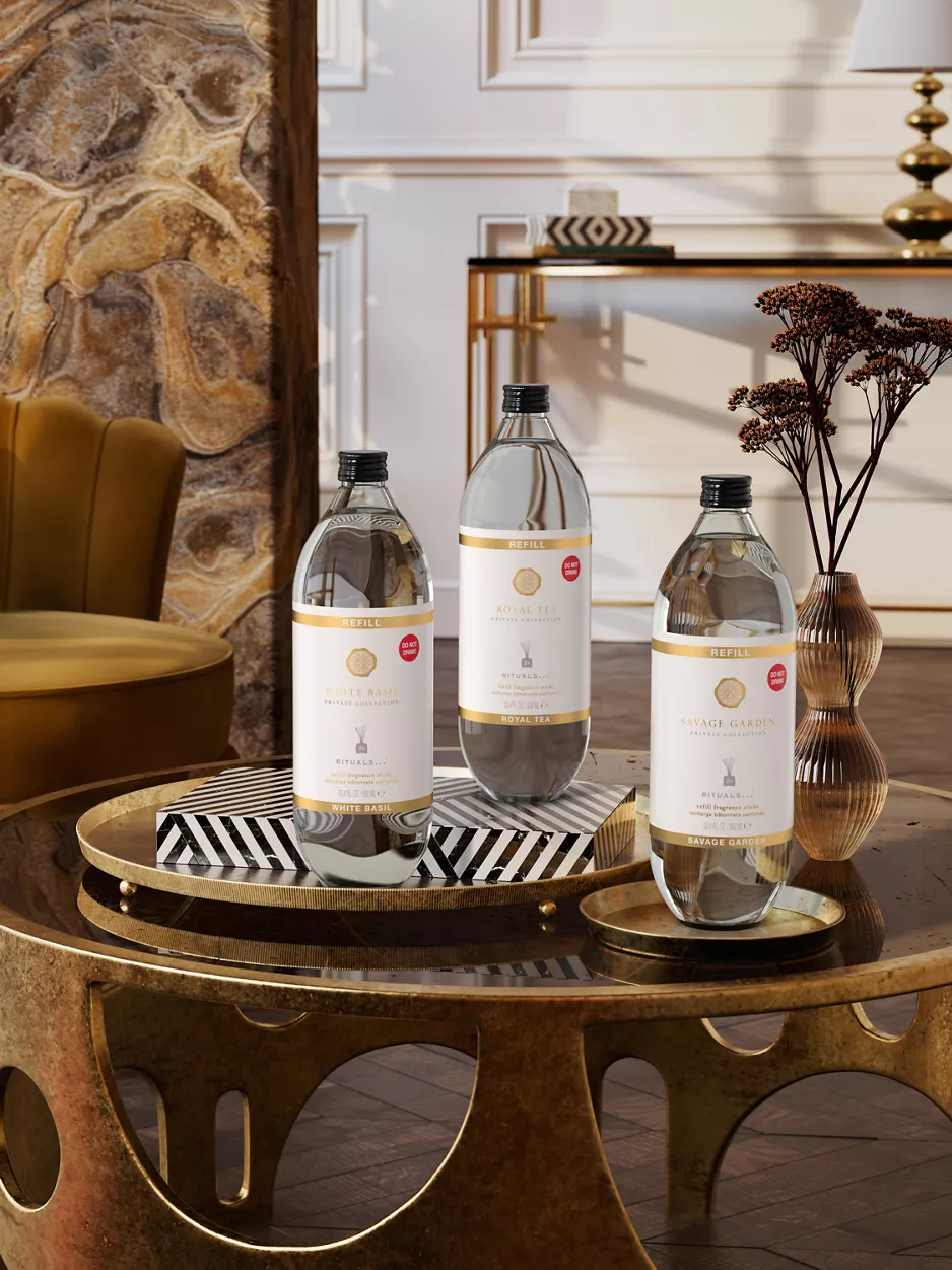 Dopřejte svému domovu osvěžující vůni našich bohatých vonných tyčinek z kolekce Private Collection. Svěží vůně se směsí zeleného čaje, ovocných fíků, citrusů a dřevitých tónů a elegantní kovový design dodají vašemu domovu nádech elegance až na 10 měsíců. chcete-li vůni ještě více podpořit, zkombinujte vonné tyčinky s čajovou svíčkou Royal.