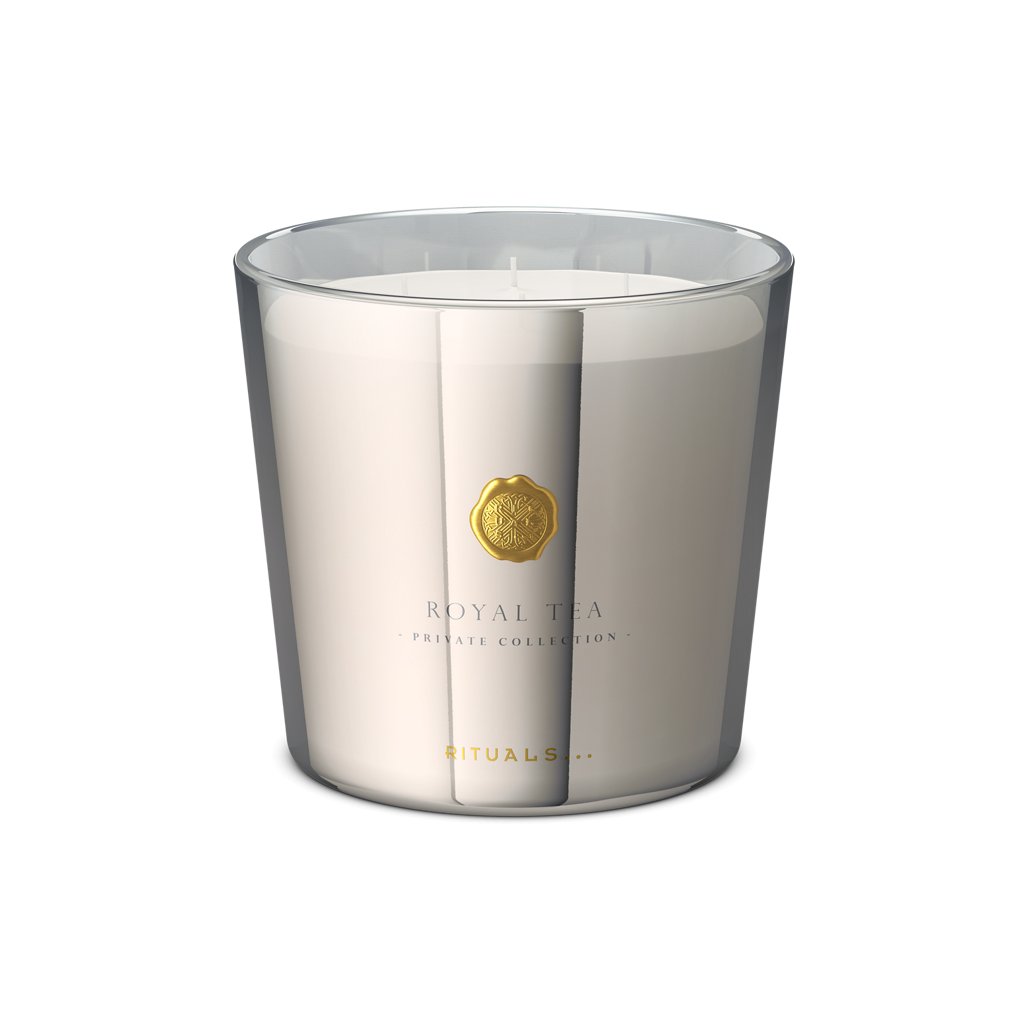 Naplňte svoj domov povznášajúcou zmesou zeleného čaju, ovocných fíg a iskrivých citrusových tónov s touto veľkou vonnou sviečkou Royal Tea z našej súkromnej kolekcie. Elegantná sklenená nádoba má kovový, polopriehľadný povrch, ktorý vám umožní pozorovať jemné mihotanie vo vnútri. Je dokonalým doplnkom každého interiéru, či už vo vašej domácnosti, alebo ako premyslený darček. Po vyhorení sviečky môžete nádobu znovu použiť ako štýlovú nádobu na kvety, ceruzky alebo štetce.