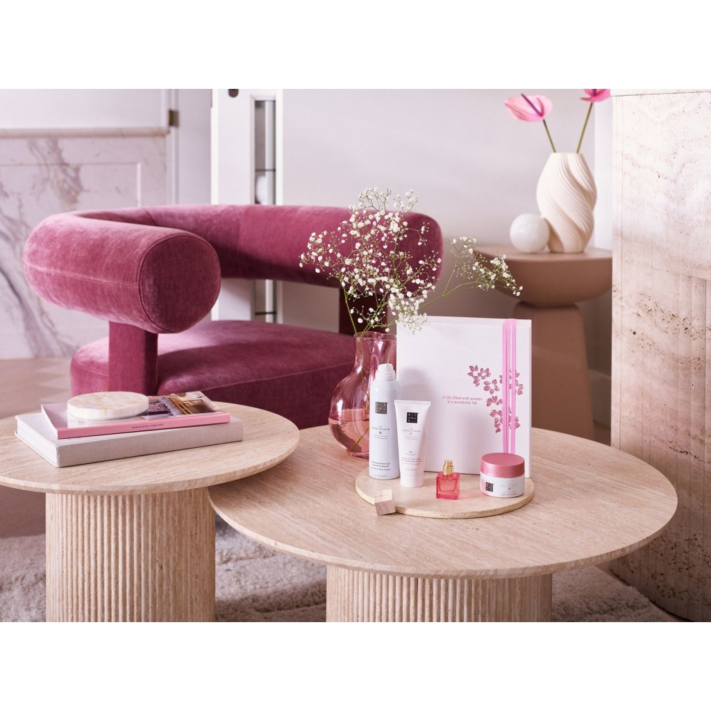 Táto darčeková súprava je ideálnym darčekom pre niekoho, kto miluje jemné kvetinové vône. Obsahuje luxusné výrobky, ktoré sú obohatené o čerešňový kvet a ryžové mlieko.