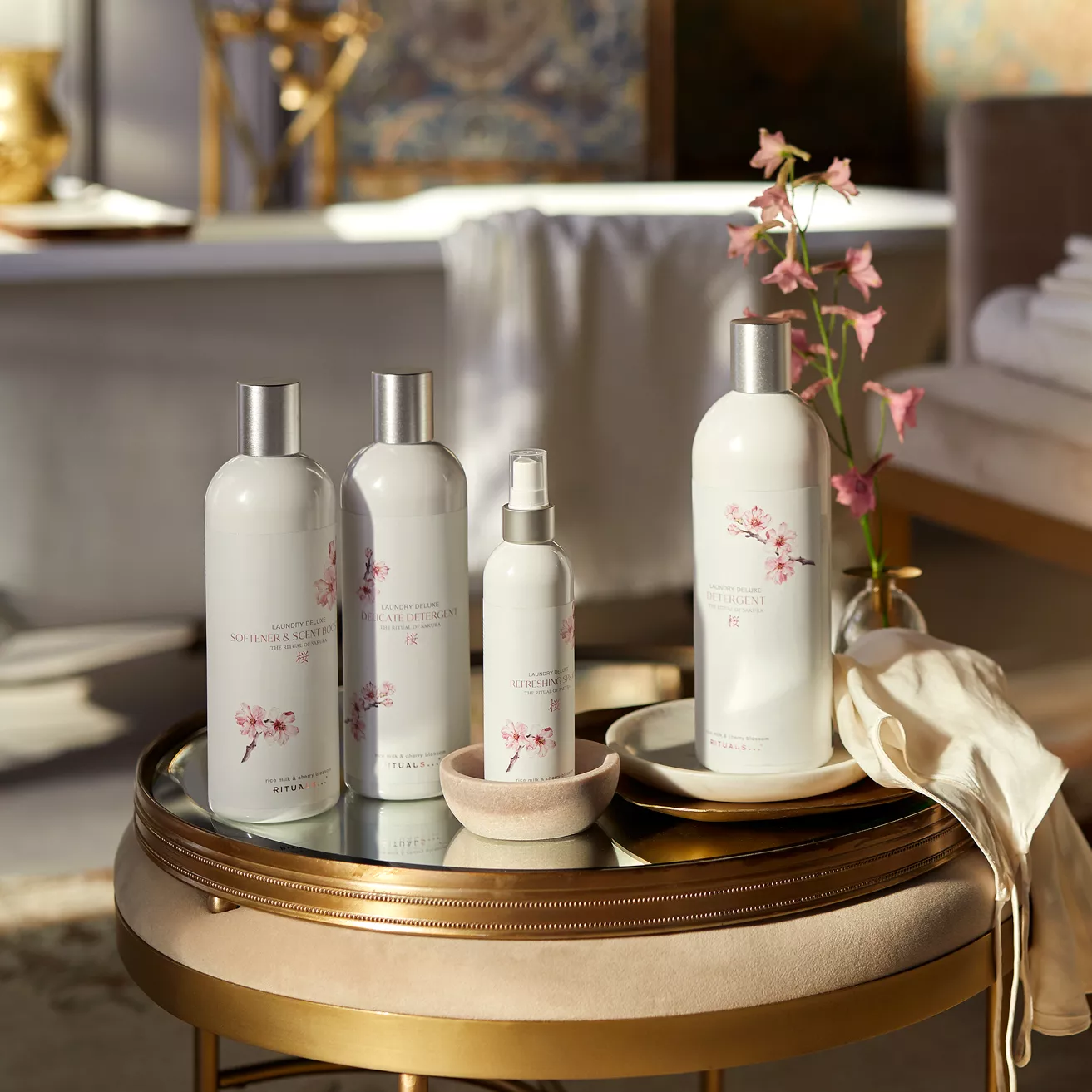 Nastriekajte náš jemne parfumovaný sprej na oblečenie, čalúnenie nábytku alebo sedadlá v aute. Jemná zmes čerešňového kvetu a ryžového mlieka vám dodá pocit sviežosti.