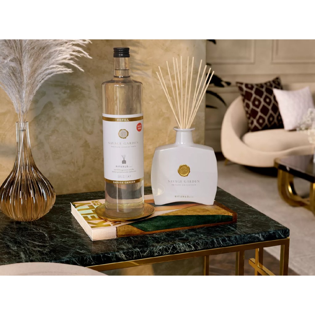 Naďalej si užívajte osviežujúci a hrejivý vplyv Savage Garden. Táto luxusná náplň je vhodná do našej súkromnej kolekcie a luxusného držiaka na vonné tyčinky. Náplň vydrží až 10 mesiacov. Pri každej náplni používajte vždy nové ratanové tyčinky. Tyčinky nie je potrebné otáčať, ak však dávate prednosť intenzívnejšiemu zážitku z parfumu, tyčinky môžete otáčať častejšie podľa svojich preferencií.