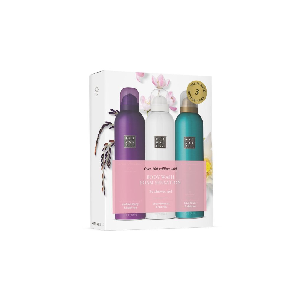 Představte někomu úžasný svět Rituals s touto dárkovou sadou. Obsahuje tři plnohodnotné sprchové pěny The Ritual of Sakura, The Ritual of Yozakura a The Ritual of Karma. Každý den si tak můžete dopřát pocit svěžího začátku s něžnou vůní třešňových květů a blahodárným rýžovým mlékem, prožít očistný okamžik s omamnou kombinací bílých květů, hřejivé vanilky a mandlového mléka, nebo si užít hedvábnou pěnu obohacenou o lotosový květ, bílý čaj a hydratační komplex Hydra-Boost