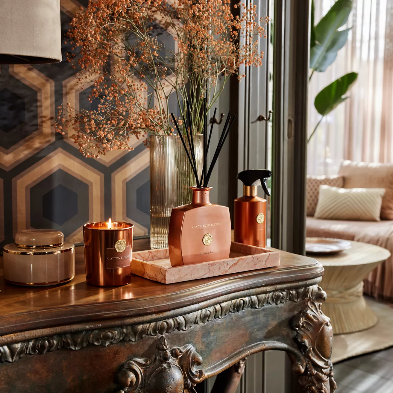 Vytvorte si doma príjemnú atmosféru s týmito nádherne navrhnutými vonnými tyčinkami z našej súkromnej kolekcie. Naša Smooth Violet poskytuje uvoľňujúcu a upokojujúcu vôňu, ktorá kombinuje ovocné akcenty s kvetinovými prvkami, ako sú okvetné lístky ruže a fialky. Sandálové drevo a jemné tóny pačuli, pižma a jantáru dodávajú vôni hrejivosť. Sklenená nádobka vo farbe šampanského sa môže pochváliť kovovým, polopriehľadným povrchom, ktorý sa dokonale hodí k rôznym štýlom interiéru, či už na vylepšenie vášho osobného obytného priestoru, alebo ako darček pre blízkeho. Užívajte si elegantnú a výnimočnú atmosféru až 5 mesiacov a skombinujte tento trstinový difuzér s vhodnou sviečkou, aby ste umocnili svoj zážitok z vône.