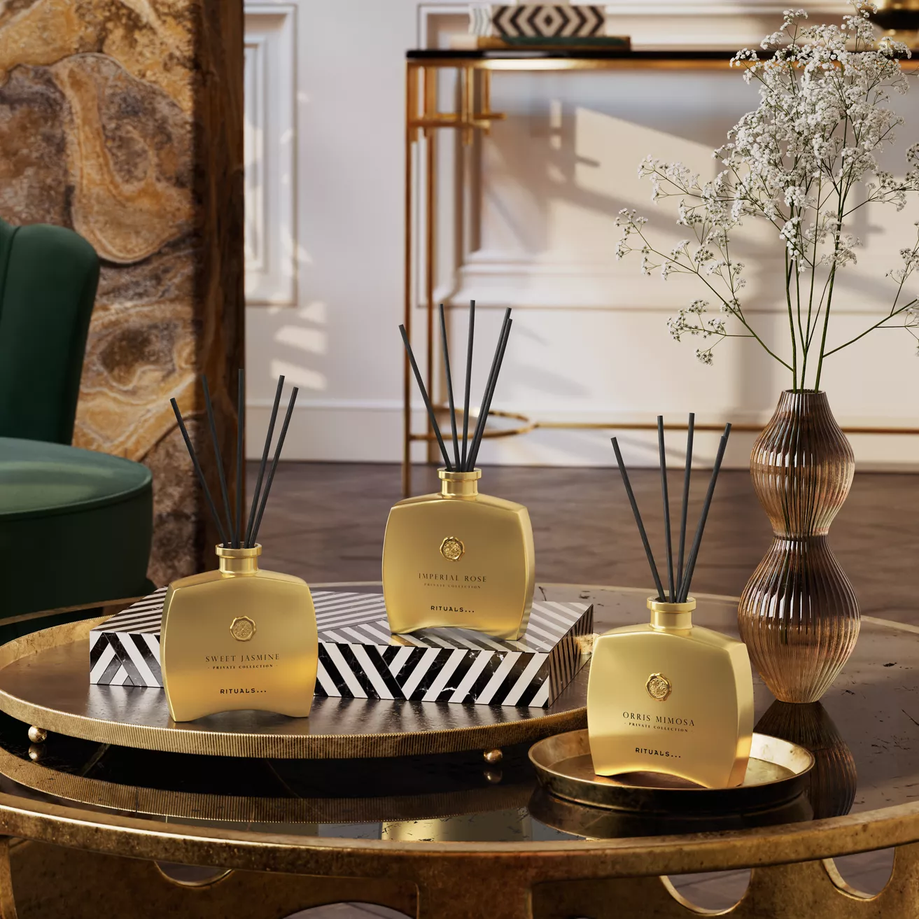 Vytvorte si doma sladkú a romantickú atmosféru s týmito luxusnými vonnými mini sviečkami z našej kolekcie Private. Základné tóny sú iskrivé a žiarivé ovocné vrchné tóny čerstvých citrusov a lesných plodov, ktoré prechádzajú do elegantných kvetín, ako je pivonka a muguet. Sandálové drevo dodáva vôni eleganciu a hrejivosť.