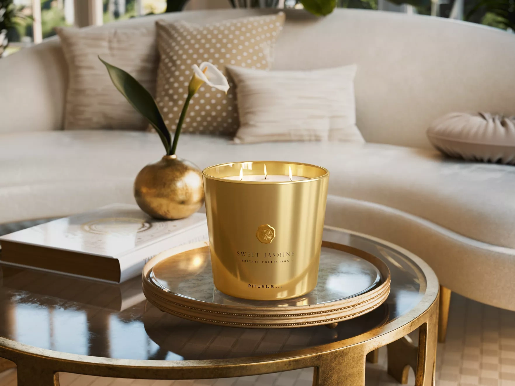 Vytvorte si doma pocit pokoja s luxusnou sviečkou s vôňou sladkého jazmínu. Táto vonná sviečka je skutočným pútačom pozornosti v domácnosti a poskytuje explóziu vône do väčších miestností, ako je obývacia izba alebo veľká chodba. Iskrivé a živé ovocné vrchné tóny čerstvých citrusov a bobuľovín vedú k elegantným kvetinám, ako je pivonka a muguet. A santalové drevo dodáva vôni eleganciu a hrejivosť. Vy a vaši blízki si môžete túto vôňu užívať až 150 hodín. Elegantná zlatá sklenená nádobka sa môže pochváliť kovovým matným povrchom, ktorý vám umožní vychutnať si jemné blikanie sviečok umiestnených vo vnútri. Matný vonkajší povrch dodáva sviečke nádych sofistikovanosti, vďaka čomu je dokonalým doplnkom každého interiéru, či už vo vašom osobnom priestore alebo darovaná ako darček. Po použití sviečky môžete nádobu opätovne použiť ako elegantnú nádobu na kvety, ceruzky alebo štetce.