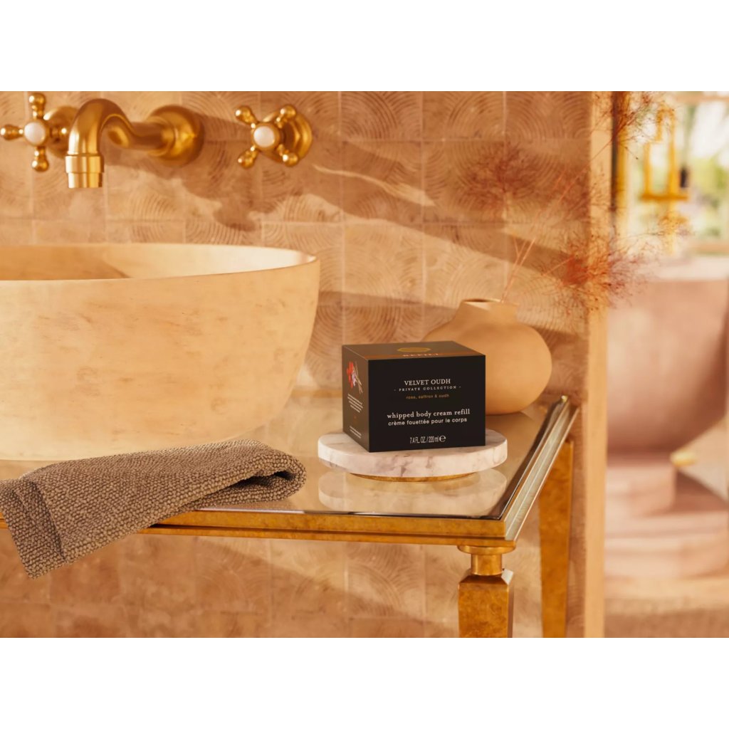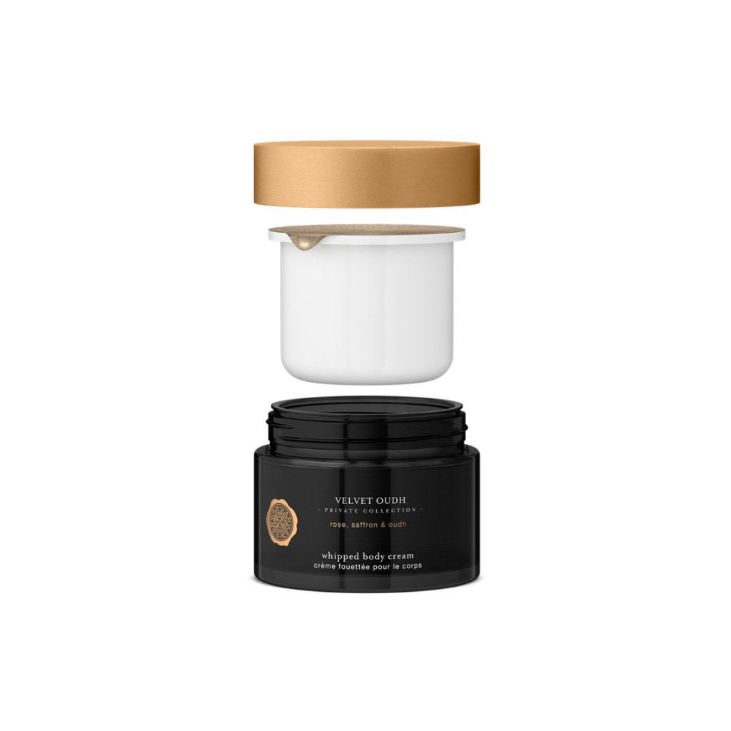 Není třeba vyhazovat kelímek od tělového krému, doplňte jej touto praktickou náplní. Obsahuje stejné luxusní složení a jemnou sametovou vůni oudhu, jen s menším obalem.