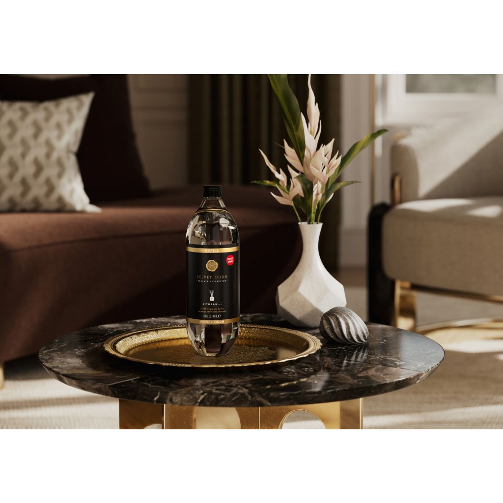 Udržujte svoj domov krásne prevoňaný teplou a lahodnou vôňou Velvet Oudh, v ktorej sa šafran a jemná ruža miešajú s bohatým základom z oudu. Táto 900 ml náplň vám umožní ľahko naplniť ktorýkoľvek z našich plniteľných sklenených držiakov na vonné tyčinky a znovu a znovu si tak vychutnávať teplú, príťažlivú vôňu. Súprava obsahuje nové náhradné tyčinky spolu s náplňou.